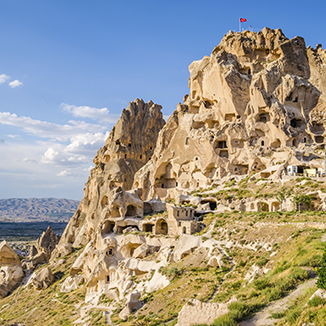 风力对凝灰岩层的侵蚀造就了它奇妙的地貌景观。凝灰岩层质地柔软,容易开凿,自古以来便是人们构建房屋的良材。在卡帕多西亚,乘坐热气球飞到几百米的高空俯瞰全景是见证其自然之美的最好方式。自然爱好者们的另一处必览之地便是坐落在安塔利亚的天然气之源——Yanartaş。Yanartaş位于凯梅尔Çıralı海滩的北部悬崖上。很多希腊神话都是围绕这一天然气排气口展开的,据称它是奥运火炬的第一灵感来源。