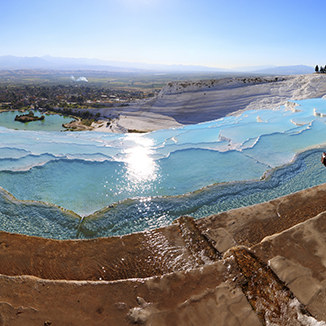 在这方面,首先应该提到的无疑是棉花堡。宏伟的棉花堡坐落在美丽的爱琴海滨海城,德尼兹利,它由温泉中化学反应后的石灰华沉积形成。古希腊城邦希拉波利斯也位于棉花堡,那里有17处温度在35-100摄氏度的水域。棉花堡已被列入联合国教科文组织世界遗产名录。棉花堡长约2700米, 宽约600 米,为游客们展现了一场视觉盛宴 。同时,分布在这里的温泉可以治疗各种疾病,例如风湿、眼疾和皮肤疾病。棉花堡距离德尼兹利市中心约20公里,乘公交车在半小时内即可到达。
